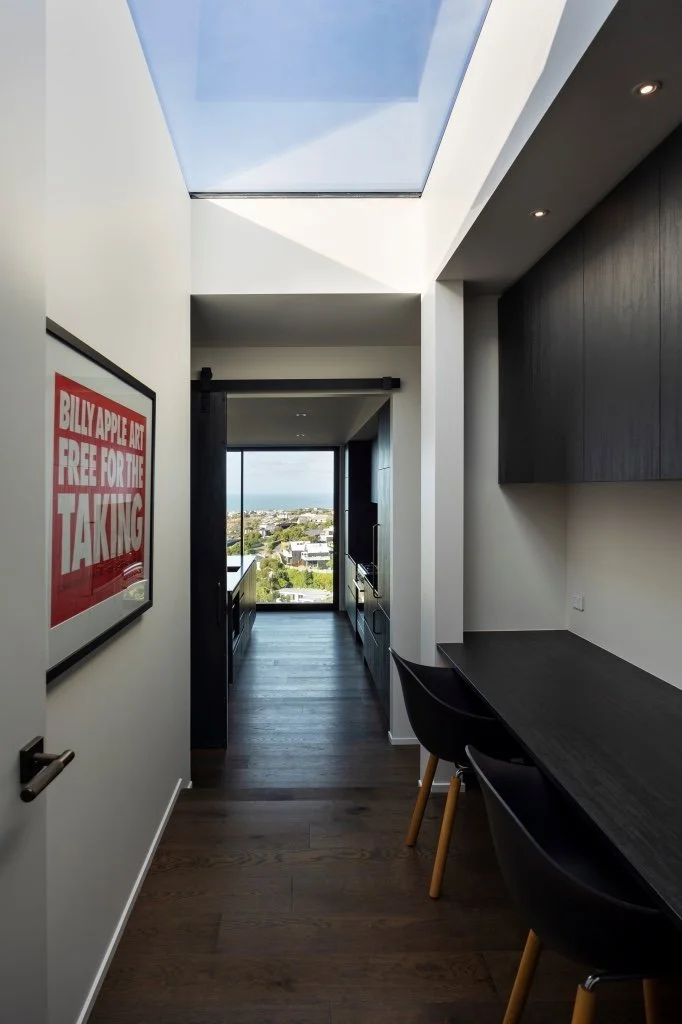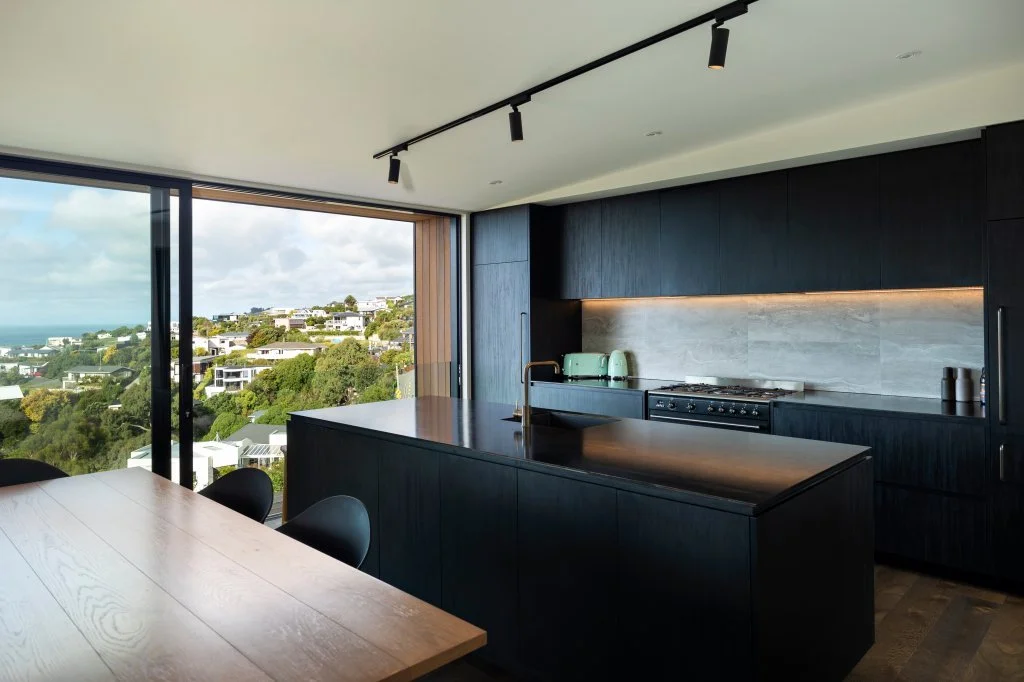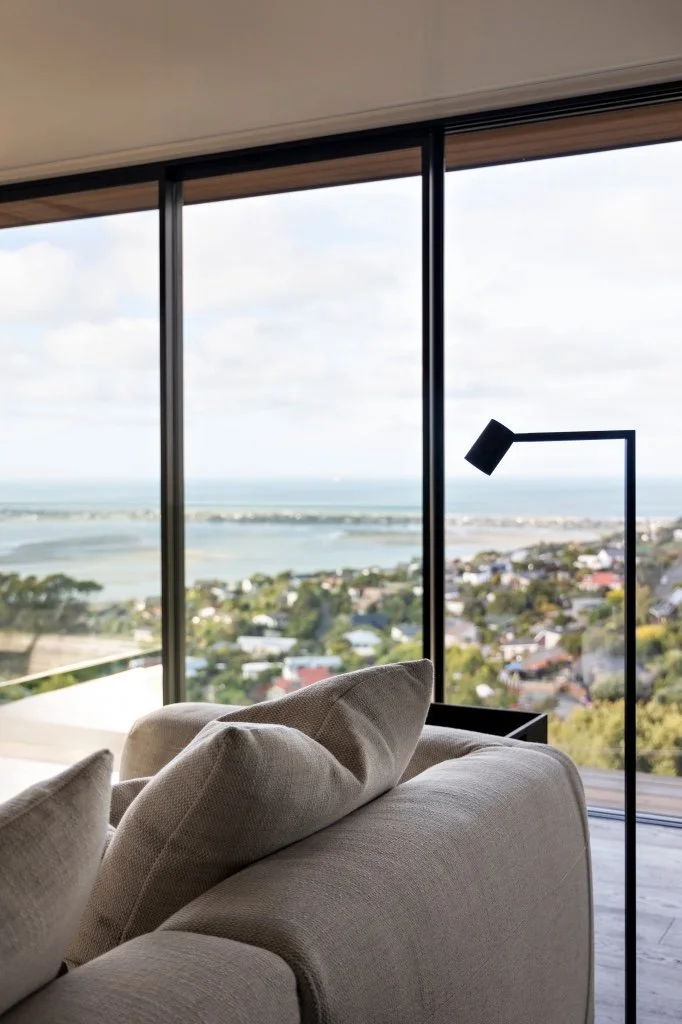Located on a challenging hill site, this small 150m2 home has been cleverly designed to maximise space and take advantage of expansive views out to Te Karoro Karoro-Southshore Spit and the Kaikoura Ranges.