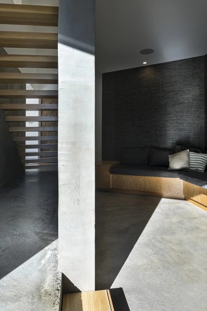 The clients required an open, light and airy home that had the ability to house visiting family members in separate guest spaces. Another critical requirement was play space for the kids within view; this was achieved by utilising the upper loft spaces adjacent to the children’s zones upstairs.