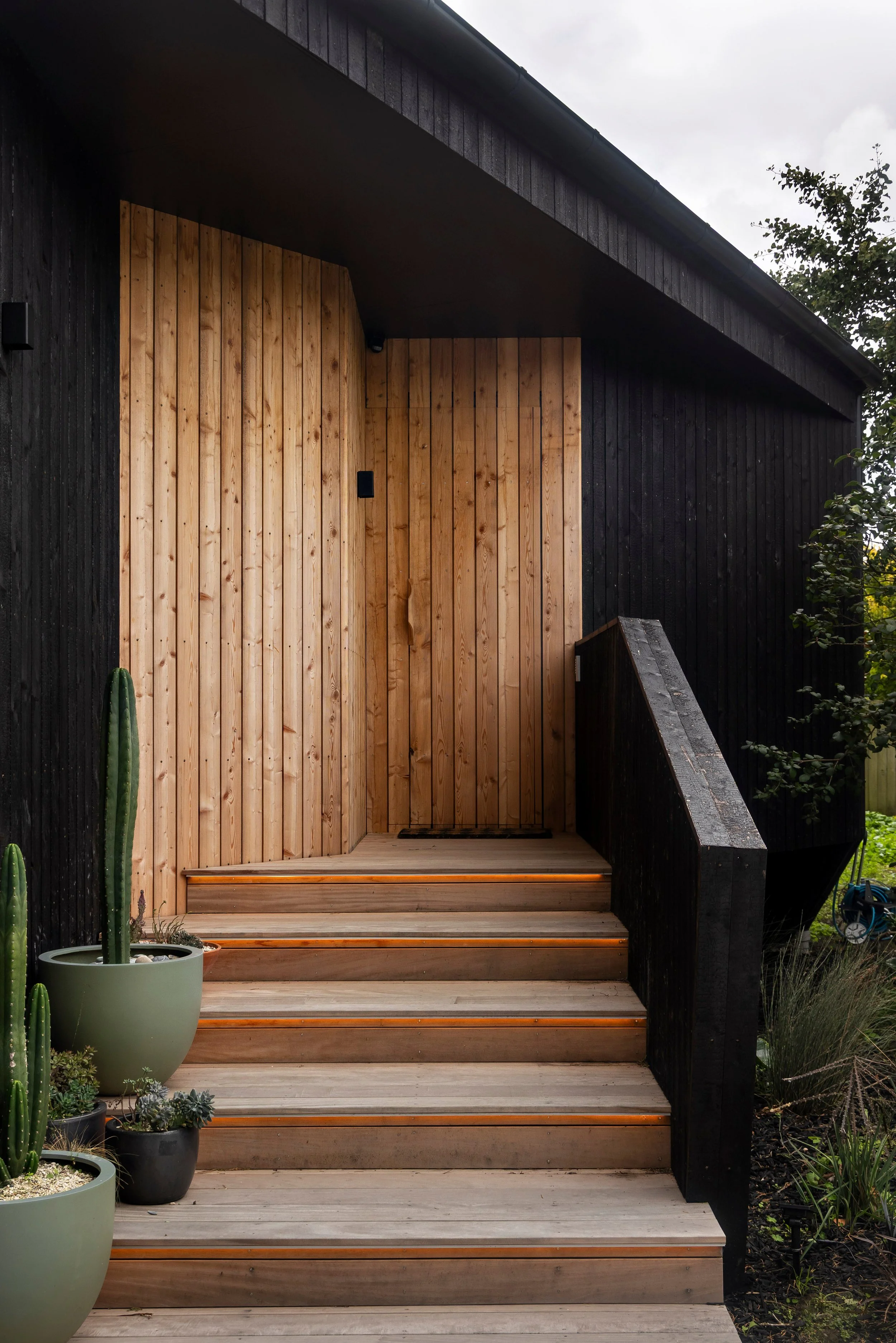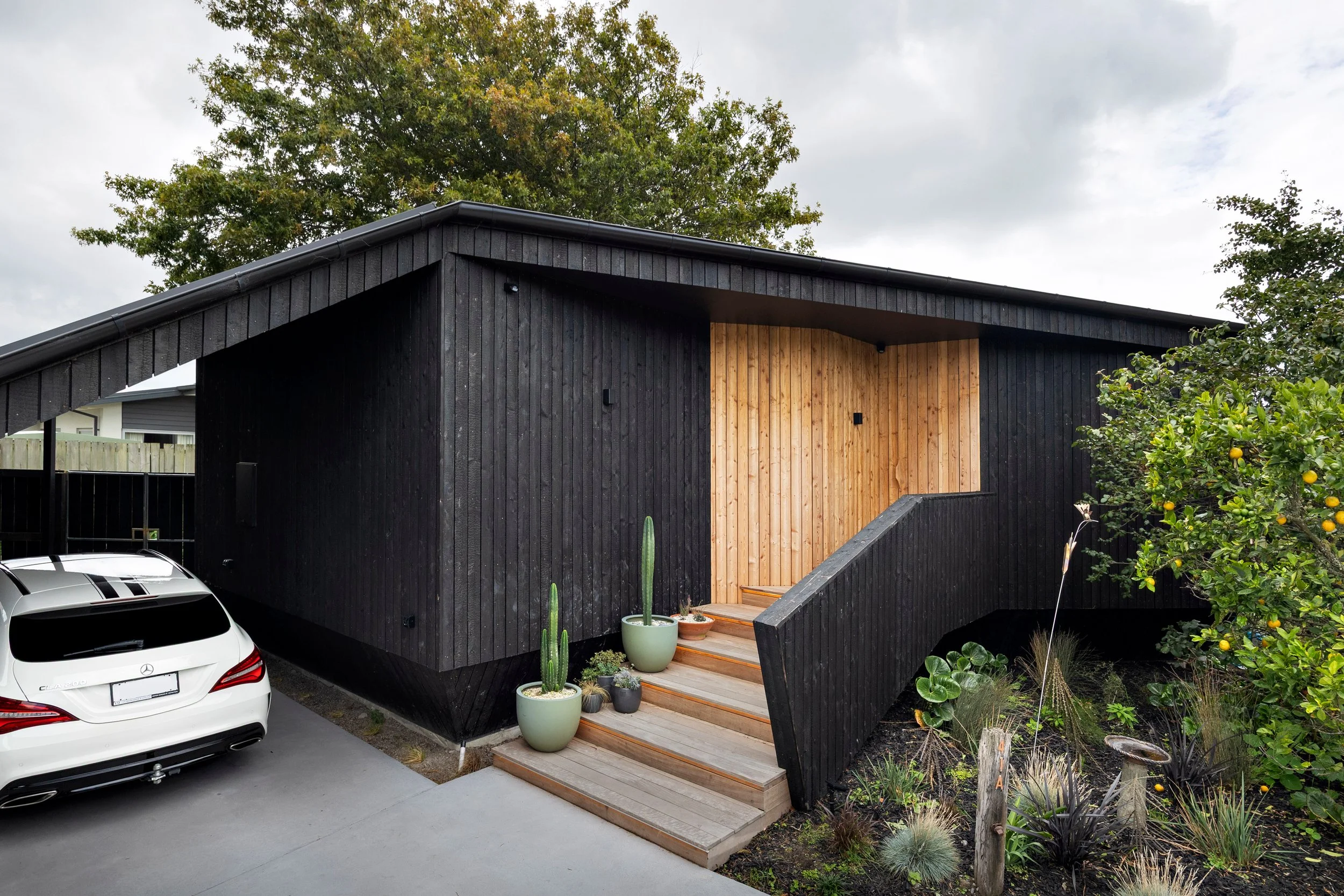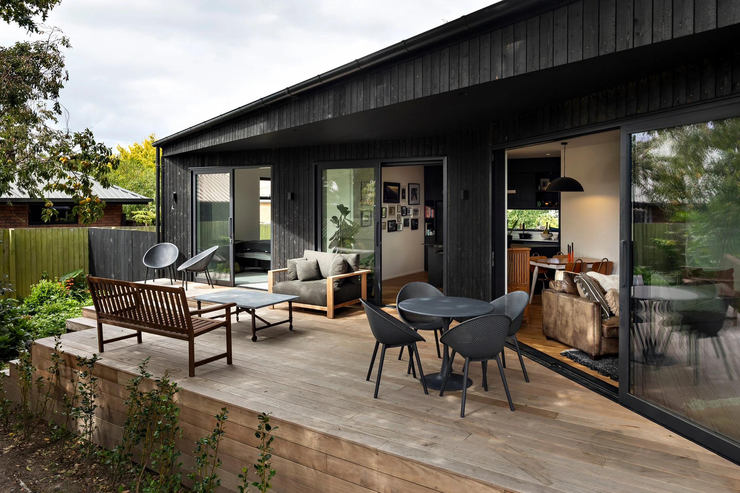 A Z-shaped form weaves between mature trees, creating sheltered outdoor spaces and varied outlooks, while an elevated floor level is resolved through subtle design moves that maintain a grounded presence. Durable materials and passive design strategies deliver a low-maintenance, energy-efficient retreat on the city fringe.